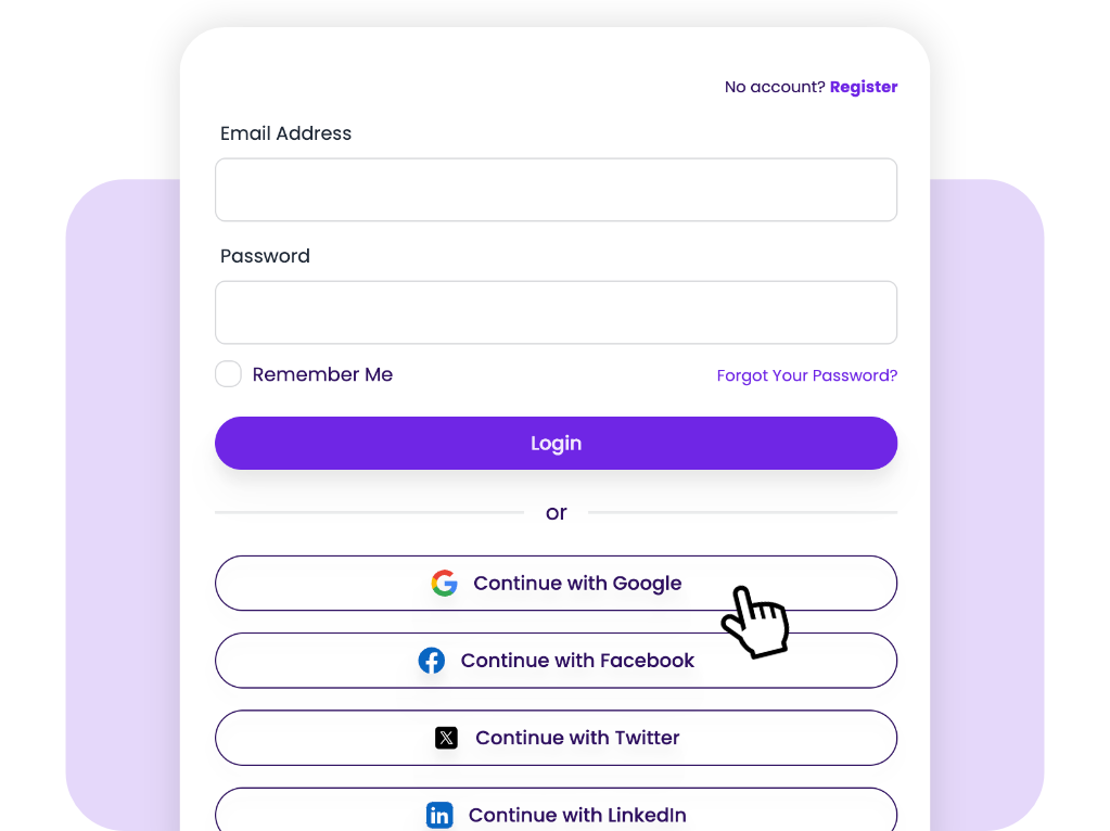 Make access easy and secure for staff and participants. TamCare includes built-in user authentication for provider staff access and participant portals, supporting both traditional email/password authentication and social login options such as Google, Facebook, Twitter, LinkedIn, and more.